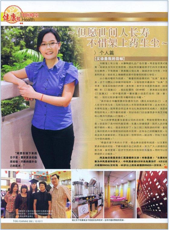 于2010年毕业且返回马来西亚执业,筹备了半年余开创仁医堂中医诊所。