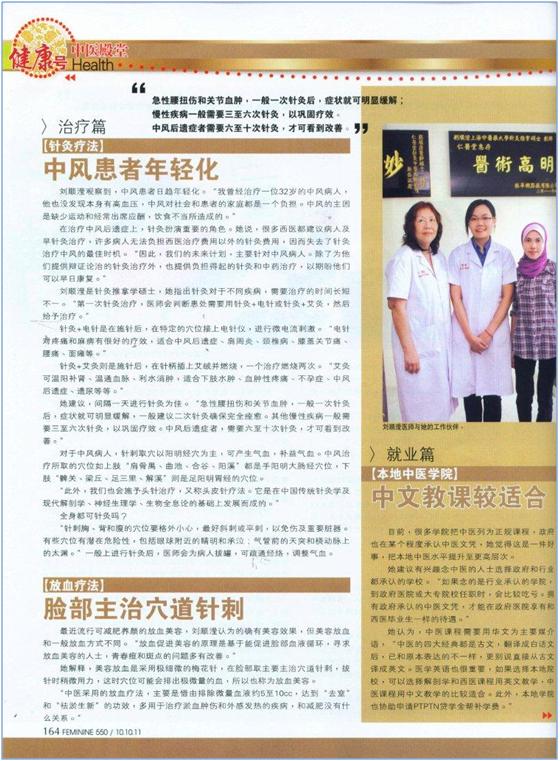 我来自马来西亚,吉隆坡。出生在一个小康之家,父母都是商人,也都没有医学家庭背景。从2002年来到上海学习,2006年本科毕业,接着继续攻读针灸科硕士学位,在本科实习和硕士学位轮转是曾跟随多位上海名老医生学习。(随导师葛林宝教授及各位名师姚楚芳、李如奎、张仁、东贵荣等跟诊学习)