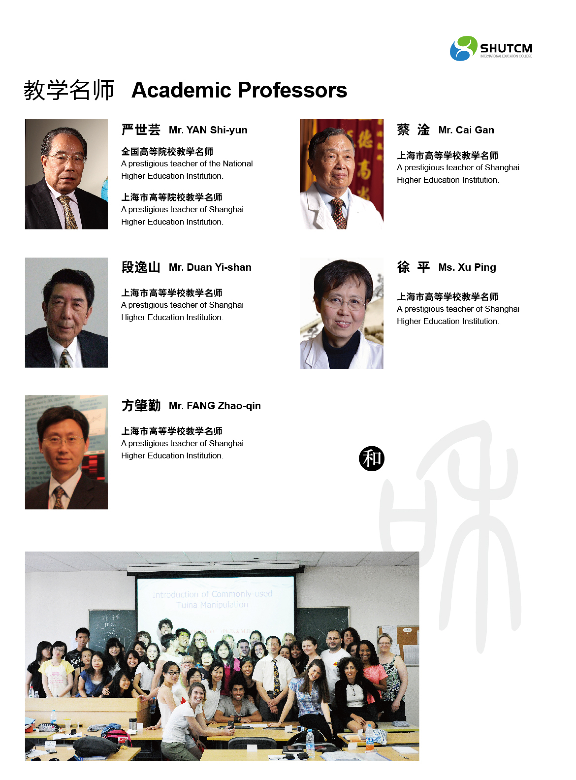 大学现有在岗教职员工近4500名,其中高级专业技术人员近七百五十名,并有院士、全国名中医、国家级重点学科带头人等,形成了一支结构优化、质量优秀的教师队伍。学校实行重点培养与吸引国内外优秀人才并重的政策,形成了专心治学的浓郁的学术氛围。国际教育学院依托上海中医药大学将广纳海内外英才,朝着拥有一支高水平、高素质的教师队伍迈进。