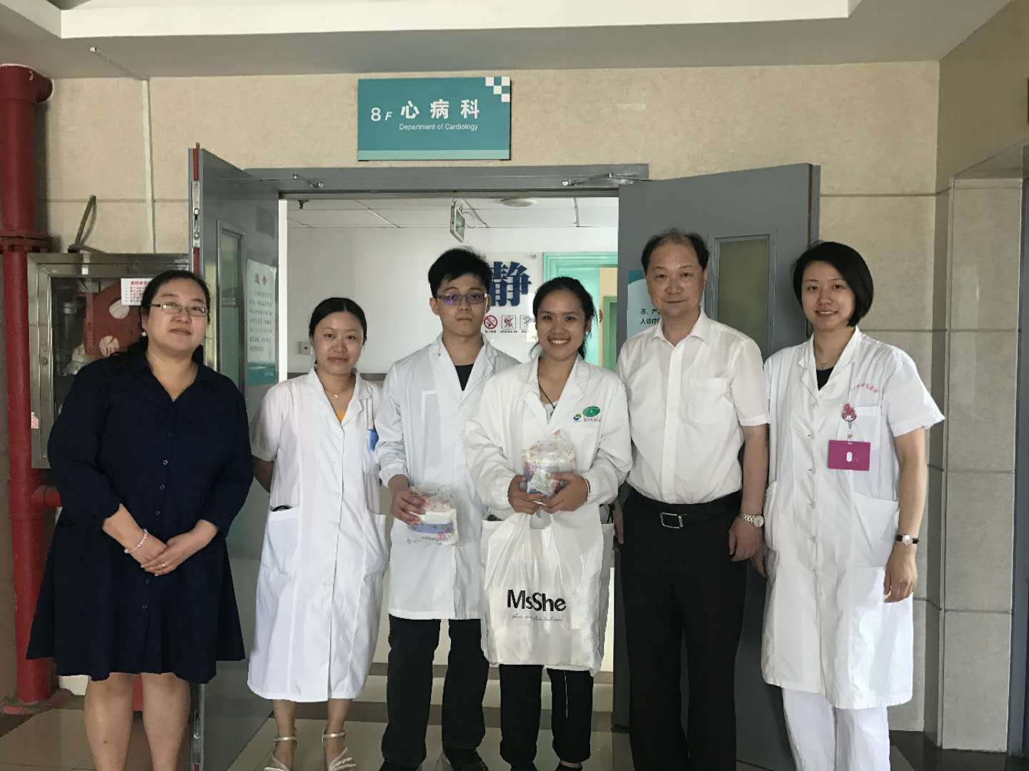 慰问中,学院领导、辅导员们与各医院教办及带教老师交流了国际学生的管理、培养和实习、见习情况,并代表学院对医院积极支持国际教育工作表达了衷心的感谢,与学生们就学业情况进行了交流,鼓励他们刻苦学习,注意暑期自身安全与健康,并为他们送上了学院精心准备的防暑降温慰问品。学院领导和老师的关怀让同学们倍感温馨,他们纷纷表示要把握时间努力学习。