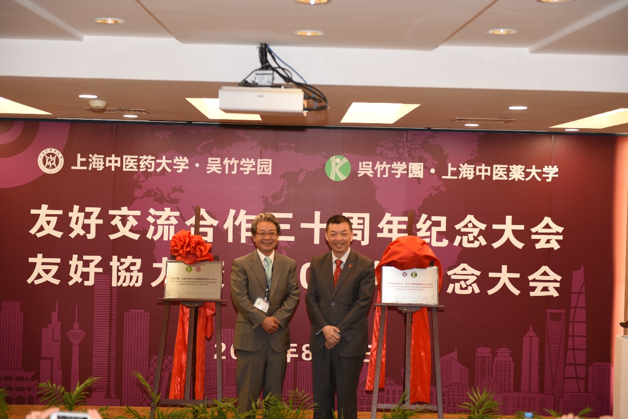 82日下午,上海中医药大学与吴竹学园友好交流合作三十周年纪念大会在国际交流合作中心三楼报告厅举行,我校副校长胡鸿毅,吴竹学园理事长坂本步、东京医疗专门学校校长齐藤秀树,两校有关部门负责人、师生代表等70余人出席大会。会议由我校国际教育学院院长林勋主持。