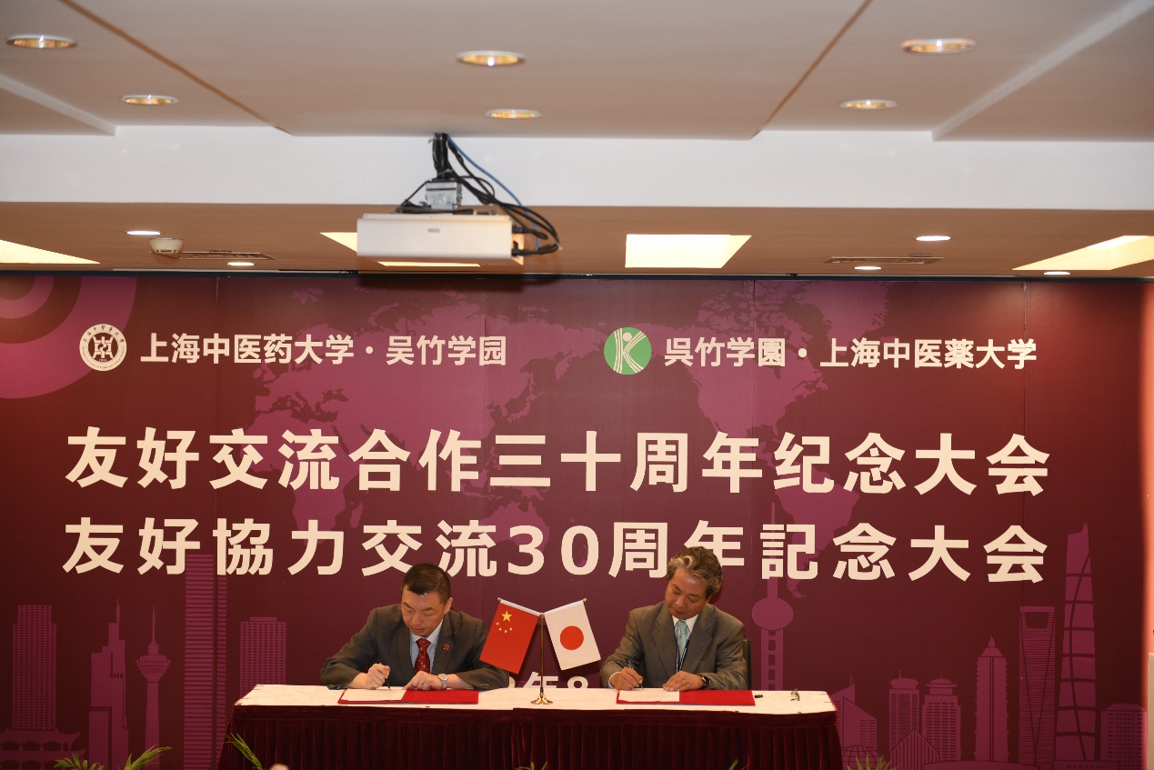 在双方师生的见证下,胡鸿毅和坂本步分别代表两校签署了《上海中医药大学 吴竹学园教育合作协议书》及两校学生互访短期留学合作协议书,标志着两校交流合作迈上了新的台阶。
