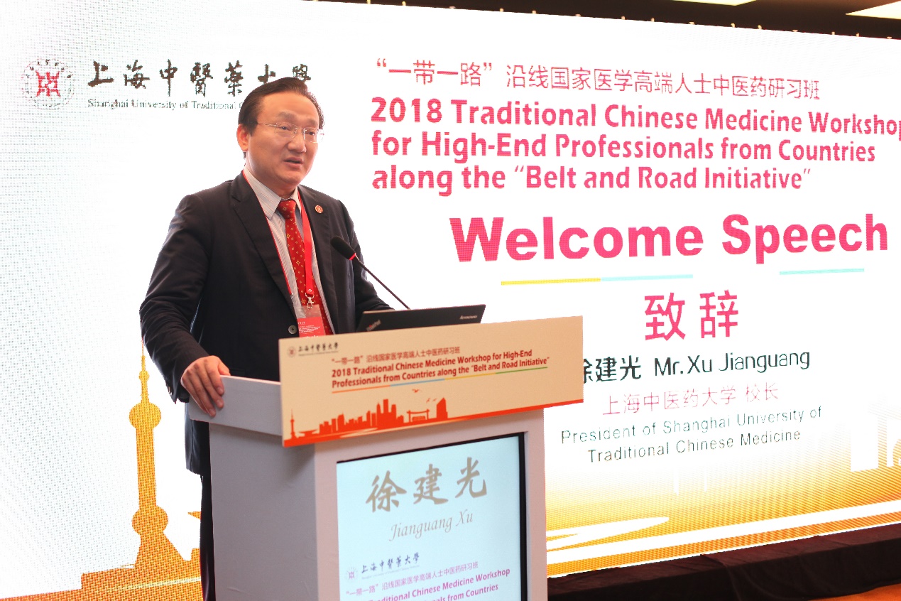 1017日上午,由上海市教育委员会主办、我校承办的“一带一路”沿线国家医学高端人士中医药研习班拉开帷幕。来自四大洲19个沿线国家的36位卫生部官员、西医医生和医学教授等汇聚上海,参加本次研习班。我校原校长、中国科学院院士陈凯先教授,我校校长徐建光教授以及百余名师生参加开班式。开班仪式由我校副校长胡鸿毅教授主持。