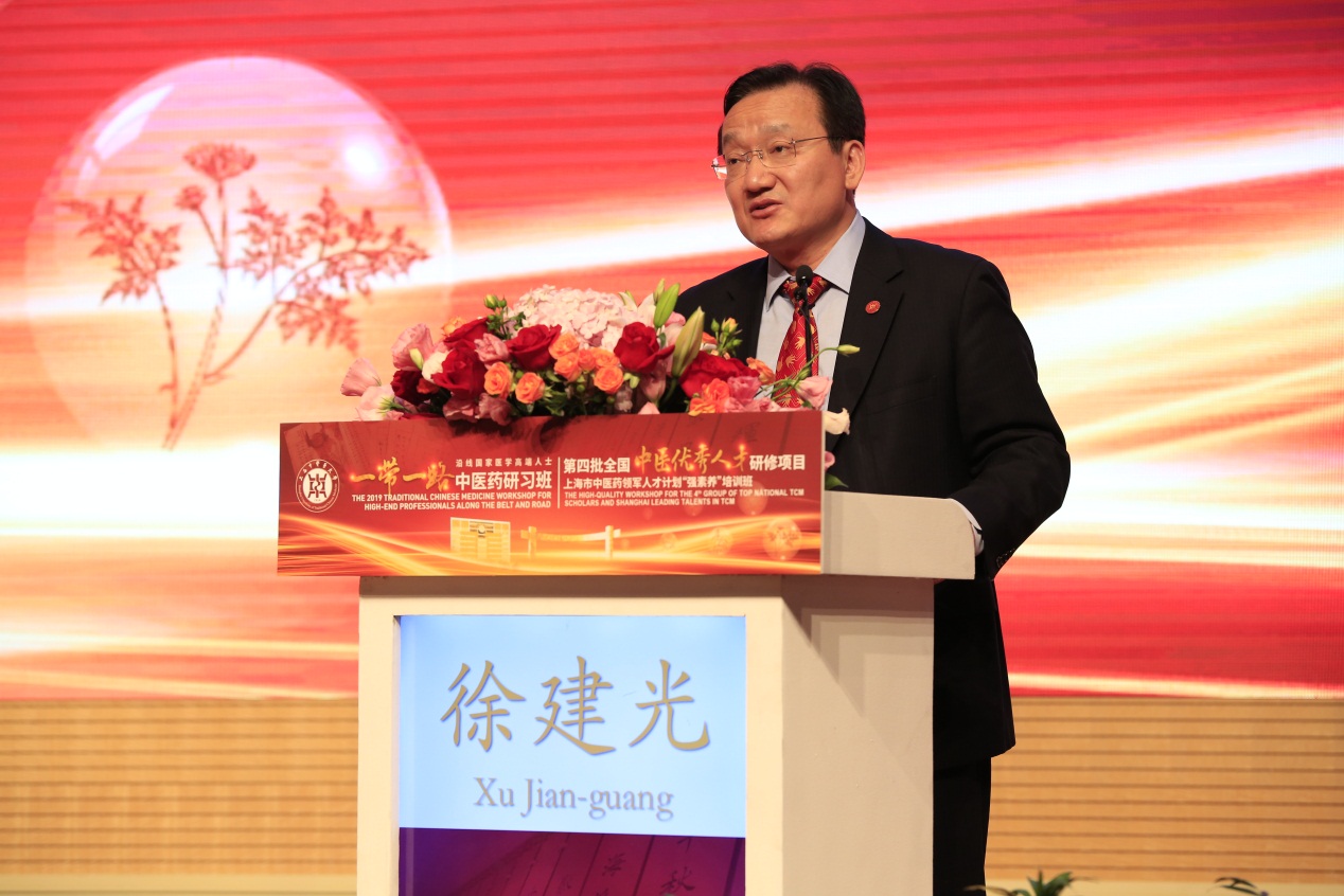 徐建光代表学校致欢迎辞,简单回顾古代丝绸之路的历史,指出不同文化间交流互鉴对人类文明进步具有重要作用。进入21世纪以来,健康问题成为人们关注的新焦点,中医药作为传统医学的代表,蕴含丰富的文化内涵和经过实践考验的医学智慧。如今中医学已传播到了100多个国家,在维护人类健康、促进文化交流等方面正发挥着越来越重要的作用。我校作为国家一流学科建设高校、地方高水平建设大学和部市共建大学,将主动担当起大学服务国家、服务社会、服务“一带一路”建设的责任。此次研习班的举办既是一次展示中国中医药发展现状的机会,更为来自“一带一路”沿线国家的业界同仁搭建了医学交流、分享发展、合作对接的平台。