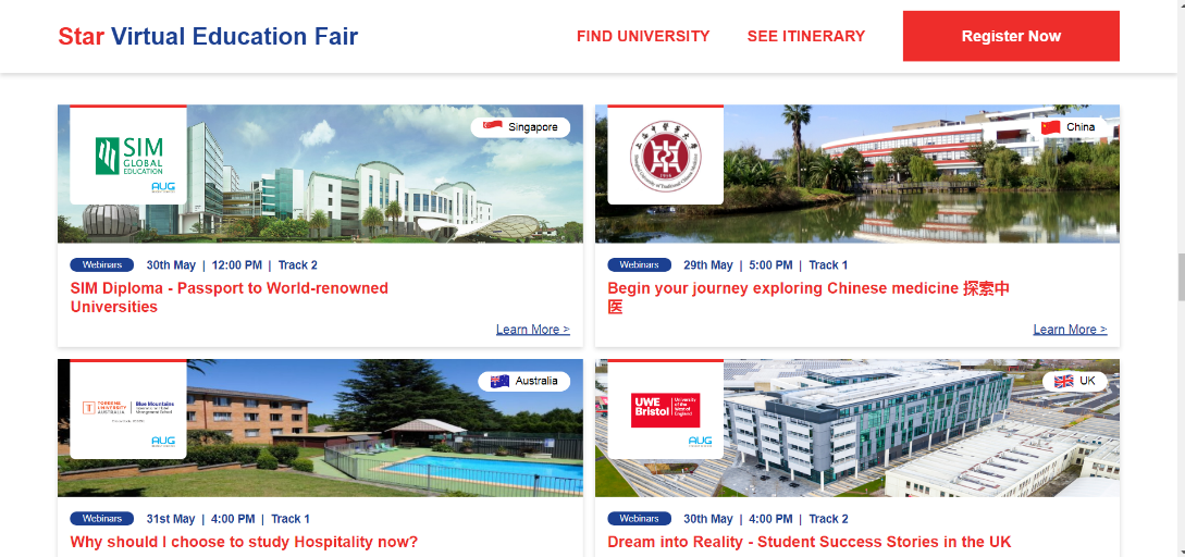 5月29日至31日,2020星报云端教育展(2020 STARVIRTUAL EDUCATION FAIR)举办。该教育展由马来西亚发行量最大的英文日报《星报》主办,有来自马来西亚和全球近50所大学,如澳大利亚墨尔本大学、英国诺丁汉大学等参加。我校是国内唯一一所参加了本次教育展的大学。