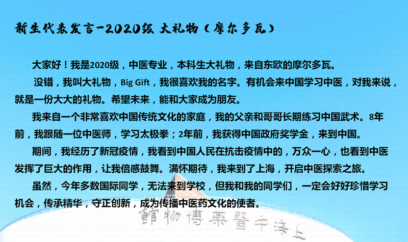 新生代表发言-2020级·大礼物(摩尔多瓦)