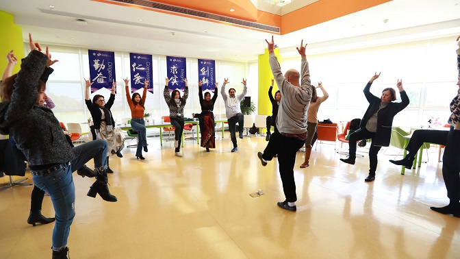 在轻松互动的氛围中,参与者们体验了用汉语打招呼和简单自我介绍等,教室里充满了欢笑声。