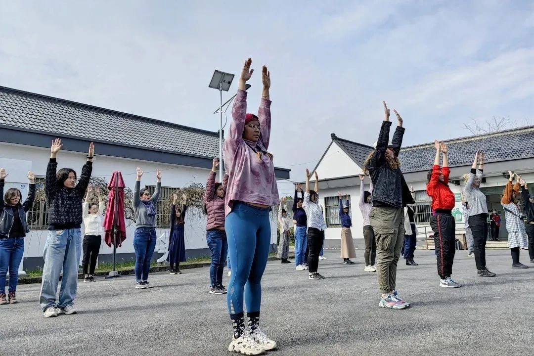春日惊蛰万物苏,田间野花、蜂飞蝶舞,绘就一幅美丽乡村、宜居宜游的生态画卷,而一套柔筋健骨的“八段锦”更显春日活力、盎然生机。四团镇社区卫生服务中心、国教院师生共练养生操,提振阳气,增强免疫。此外,在“小荡村”辨识中草药,游微公园、逛小荡市集、看农宅农地,春日美景的勃勃生机吸引了国际学生驻足留影。