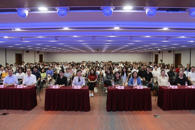 会议伊始,韩丑萍代表学院向2023级新生致欢迎辞,向新生分享了选择来上海中医药大学就读的原因。她指出,上海是一座安全开放包容的国际化大都市,古老而现代,温暖而舒适,而国际教育学院得益于高质量的教学水准与临床资源,国际学生人数始终位居全国中医院校第一,希望同学们怀抱梦想、全力投入,认识自己、强大内心,不畏挑战、追求卓越。