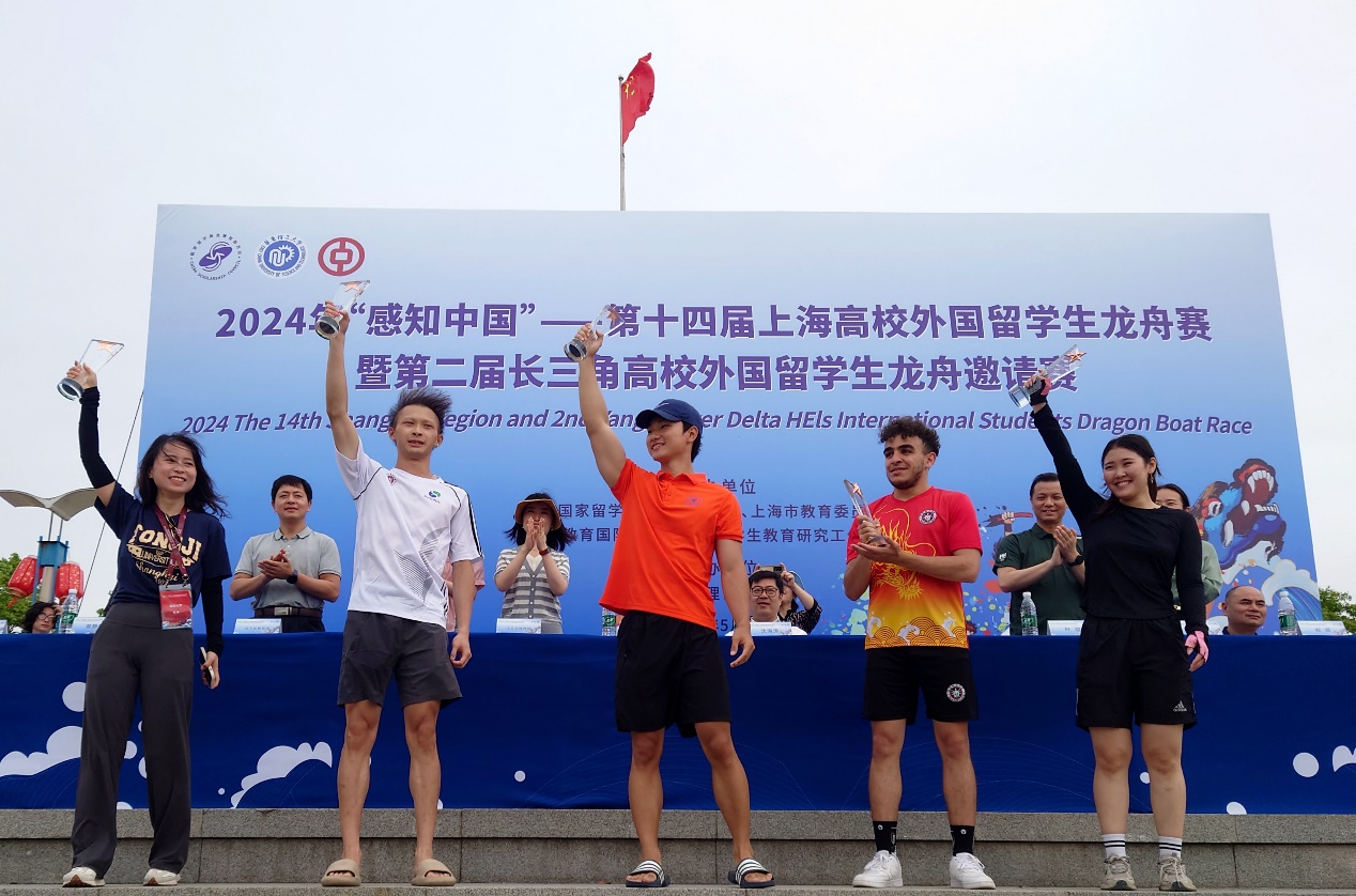 5月25日,上海中医药大学国际学生龙舟队参加第十四届上海高校外国留学生龙舟赛暨第二届长三角高校外国留学生龙舟邀请赛,与兄弟高校一起,劈波斩浪、奋楫竞渡,凭借卓越的实力,斩获第五名佳绩,取得历史性突破。