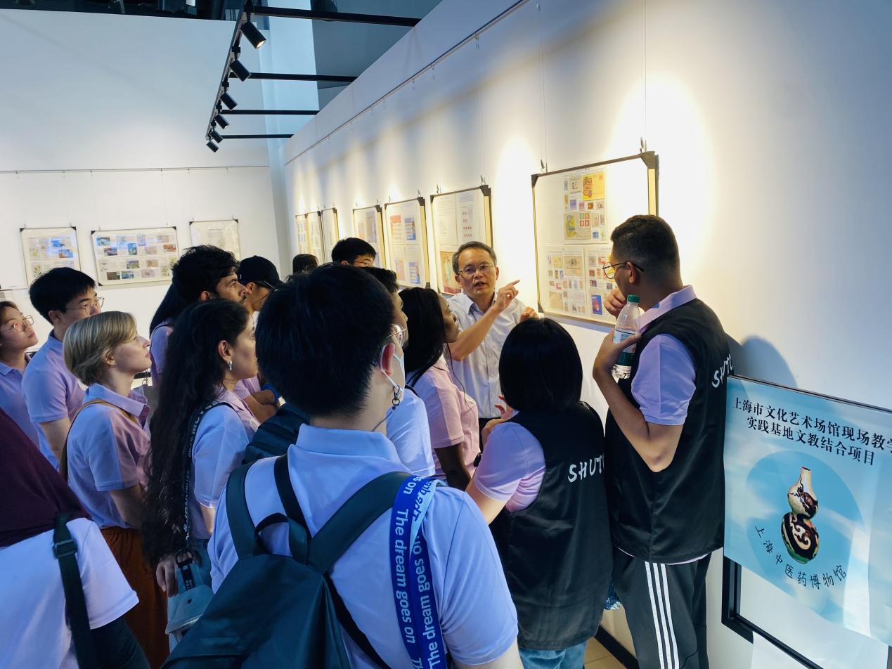 午后,国际学生们打卡了上海中医药博物馆的“邮票里的医学”临展,透过各类邮品,畅游中医药历史长廊。从古老的医书典籍到精致的中药炮制工具,从珍贵的针灸铜人到琳琅满目的中药材,随着加深对展品的了解,国际学生纷纷表示,通过这次独特的体验,他们见证了中医药学的悠久历史,深刻感受到了中医药文化作为人类共同财富的独特价值。