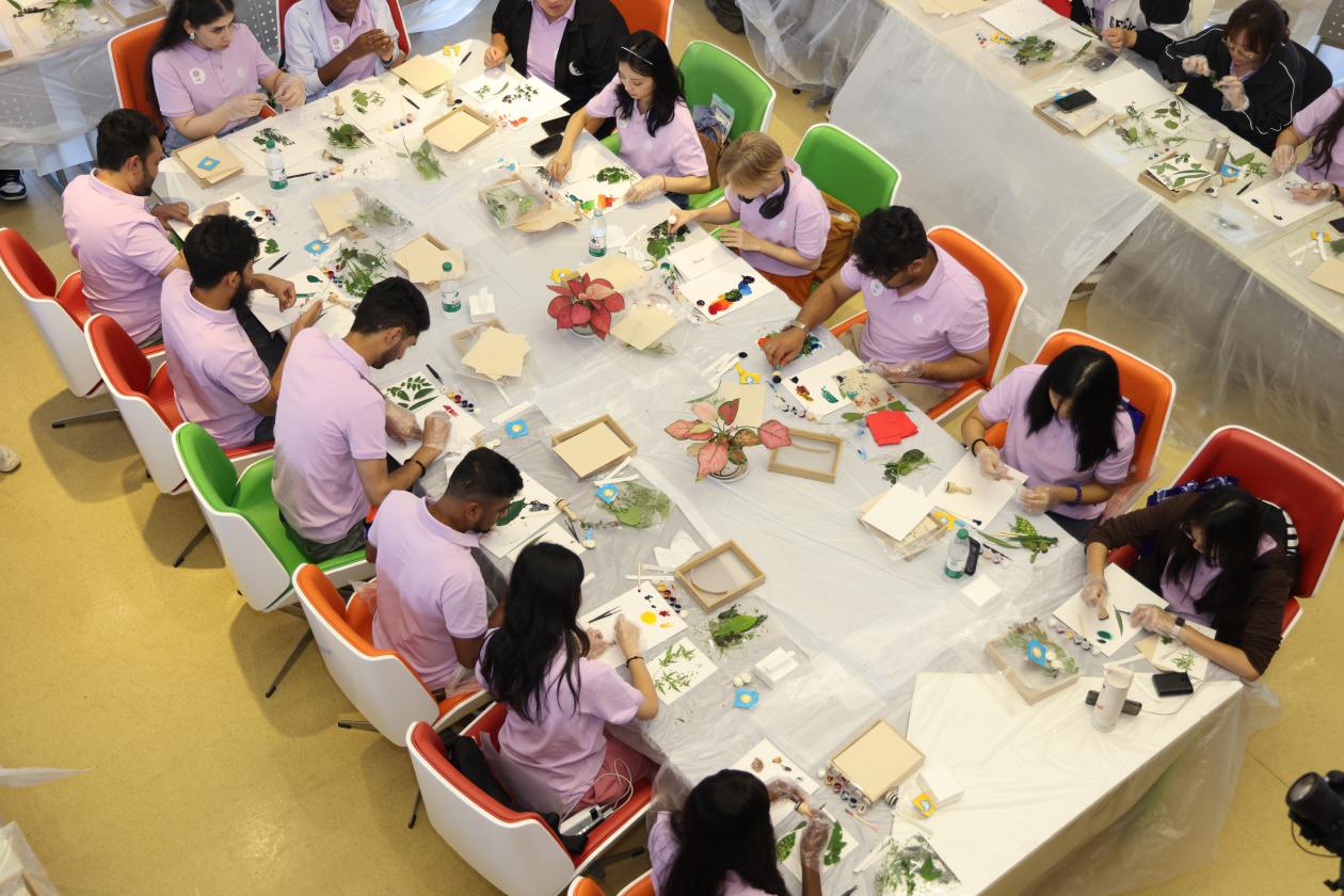 活动尾声,国际学生们一同学习中医本草版画。版画是与油画、国画并列的世界三大美术形式之一,这些版画作品融合了传统与现代艺术,展现了中草药的不同形态之美。国际学生们学习版画制作的基本技巧,从设计草图、雕刻木板到上色印刷,每一步都充满挑战与乐趣。看着亲手制作的版画作品初现雏形,大家的喜悦之情溢于言表。