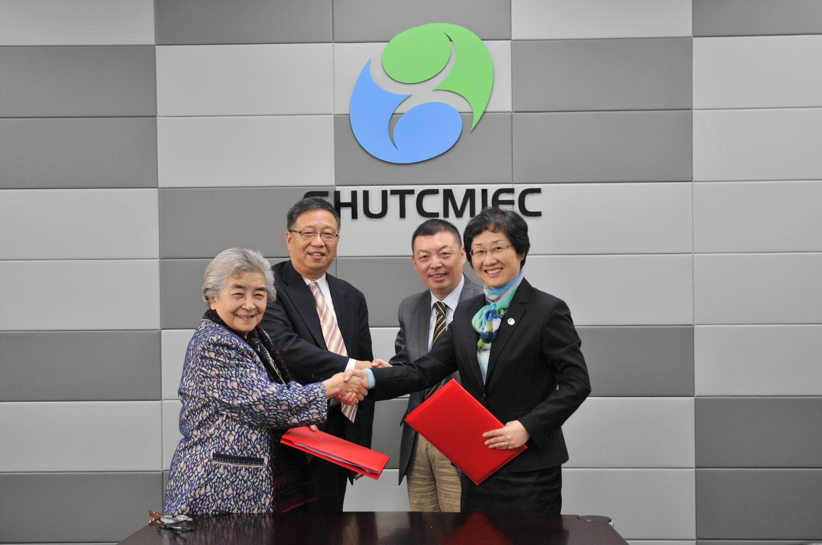 From left to right: Johanna Chu Yen, ATOM’s president, Renliang Xu, ATOM’s chairman, Hu Hongyi, vice-president of SHUTCM and Yan Xiaotian, dean of SHUTCM’s International Education College