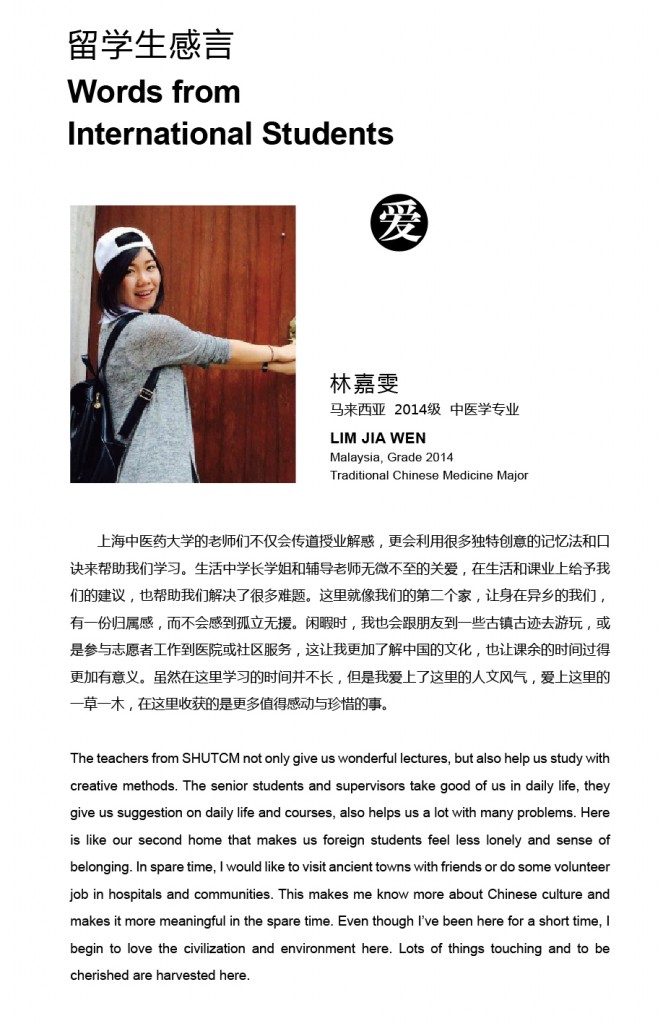 LIM JIA WEN【Malaysia. Traditional Chinese Medicine Major】