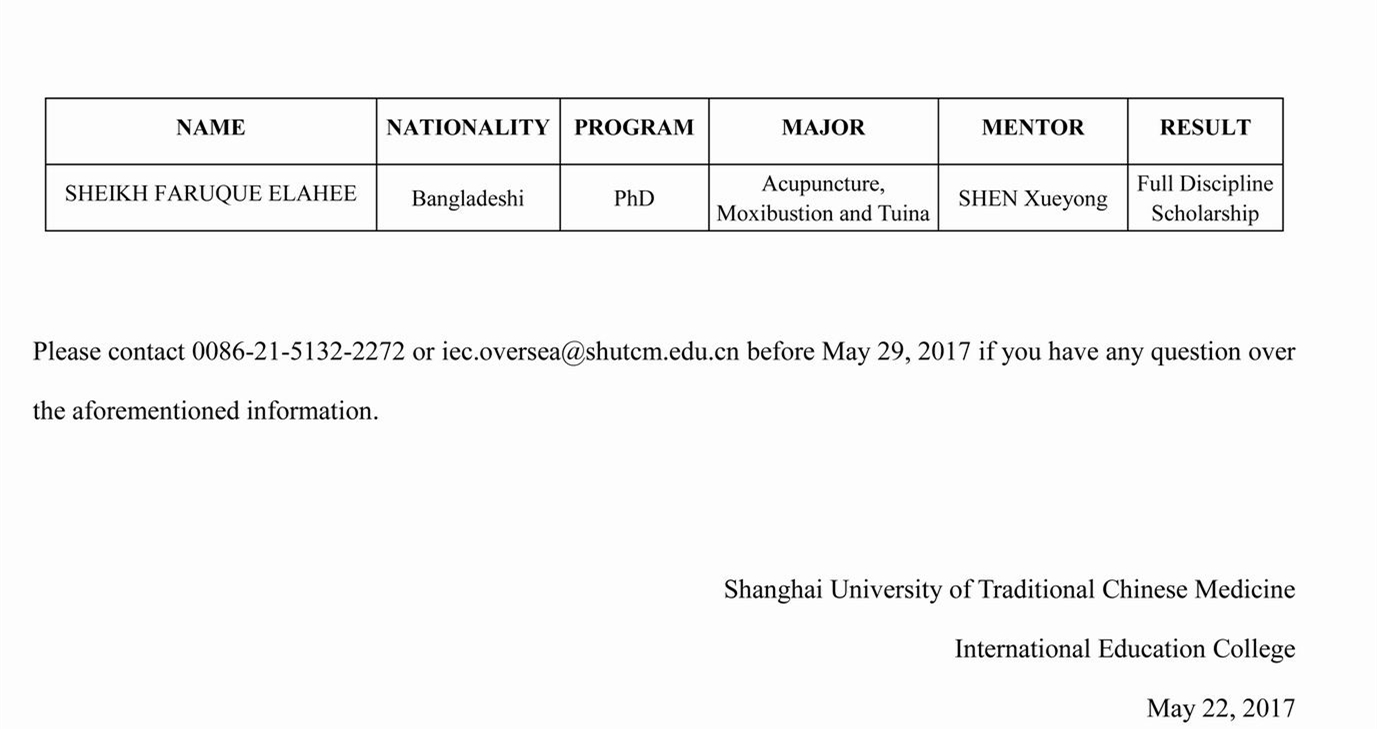 Publicity of Discipline Scholarship for Taught-English International Postgraduate Programs SHUTCM 2017