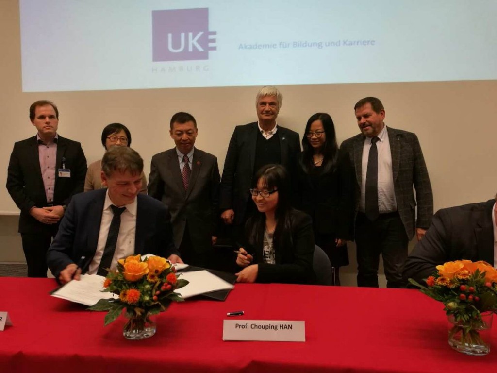 Officials from the University of Hamburg and Shanghai University of Traditional Chinese Medicine sign an agreement to initiate a joint master's program for high-end TCM doctors.