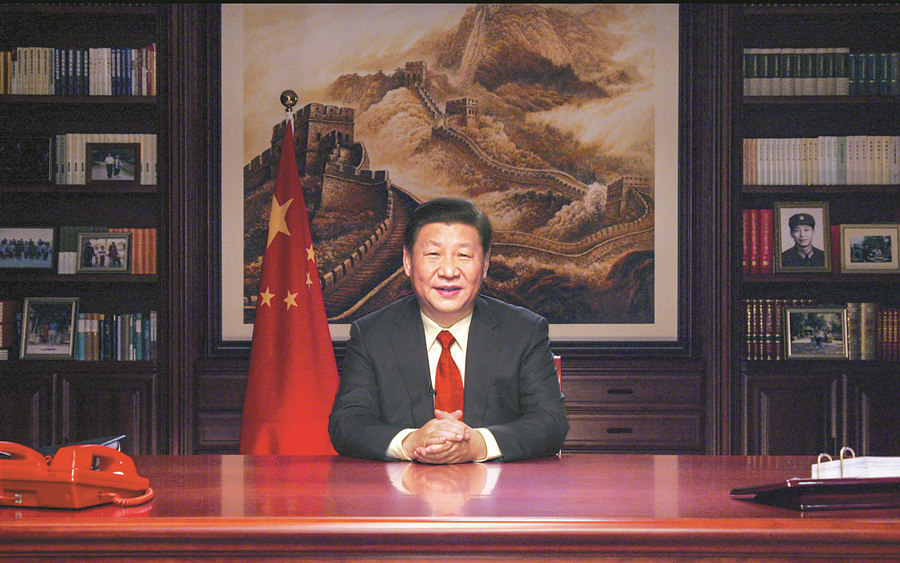 President Xi Jinping delivers his New Year address on Sunday. It was aired on television, radio and the internet. XINHUA