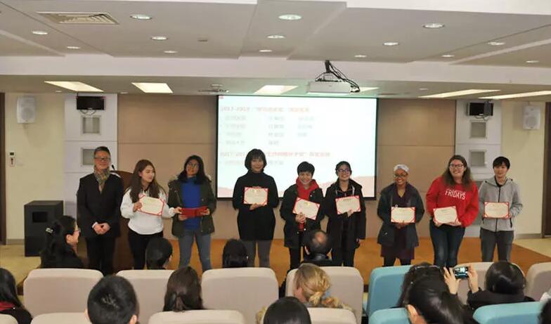 International students from Shanghai University of Traditional Chinese Medicine get awarded for their academic progress or dedication to voluntary services during the previous semester. [Photo from WeChat account SHUTCMIEC]