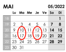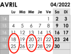Dates: les 18, 20, 22, 25, 27 (cours) et le 29 (observation clinique) avril 2022