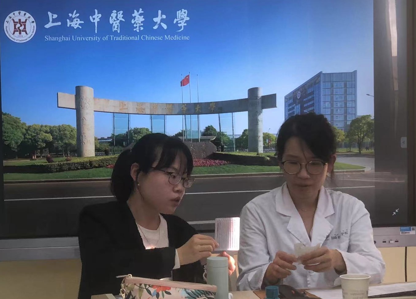 上海中医薬大学国際教育学院の傅勤慧副院長、鉏桂祥教授、鍼灸推拿学院の陸萍教授、具紫勇准教授は、今回の研修の講師を務めました。四名の先生方はいずれも大学で教鞭を執りながら、病院での外来診療にも携わっております。臨床の実例を豊富に取り入れる先生方の授業は大学で高い人気を誇っています。